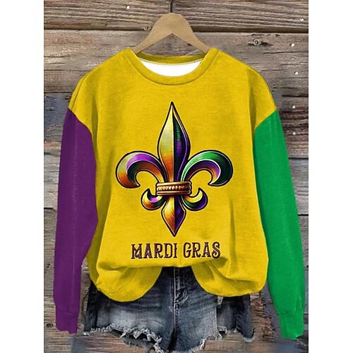 Felpa da Donna Carnival Graphic Shamrock Classica Casual Maniche Lunghe Collo Tondo Tops Regolari Abiti da Festa Serale Stampa Nera Gialla Viola Verde Primavera Autunno