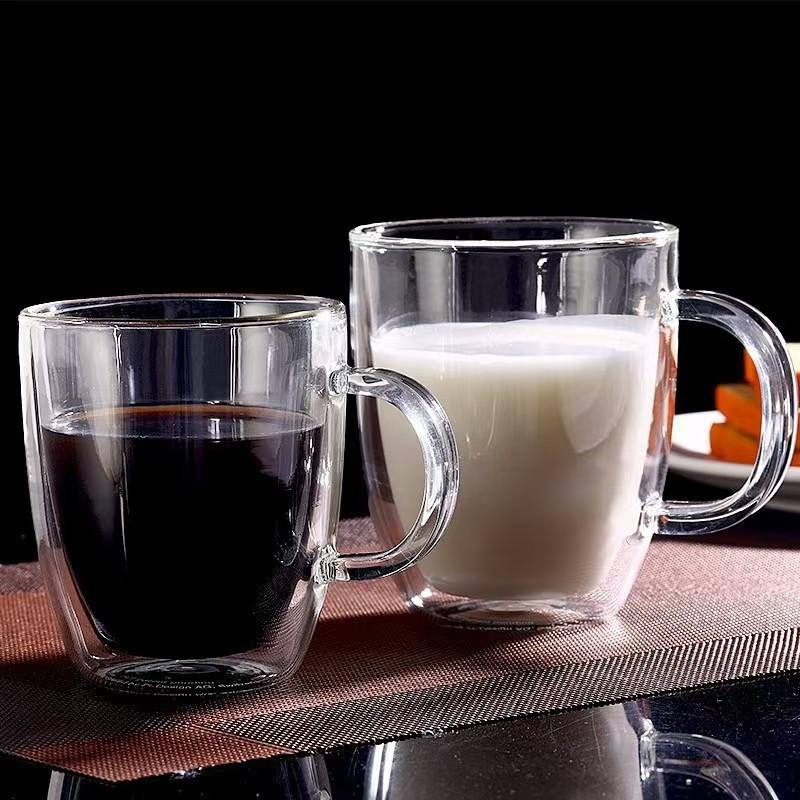 Hushålls dubbellager äggformad värmeisolerande glas genomskinligt borosilikatglas med handtag och lock kaffekopp