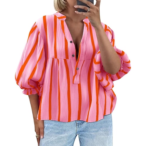 Per donna Camicia Blusa Top Eleganti Semplice A righe Elegante Vintage Signore Manica Lunga Manica a Palloncino Scollo a V Top Regolari Quotidiano Lavoro Ferie Arricciato Patchwork Bottoni Blu Giallo