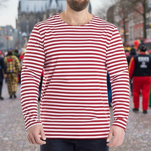 Costume di Carnevale 2026 Carnevale T-shirt Felpa Camicia a righe Bianco e Rosso Adulti Per uomo Carnevale Feste Performance Costume di Carnevale facile Vestirsi