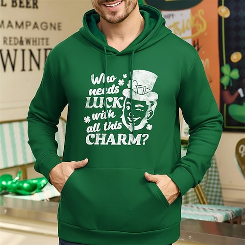 San Patrizio 2026 Birra Trifoglio Irlandese fortunato Carnevale Felpa con cappuccio Innovativo Divertente Adulti Per uomo Giorno di San Patrizio Casuale Feste Costume di Carnevale facile Vestirsi