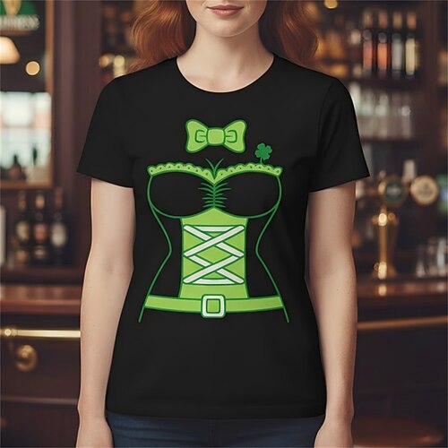 San Patrizio 2026 Irlandese fortunato Carnevale T-shirt Cosplay Adulti Per donna Giorno di San Patrizio Casuale Feste Costume di Carnevale facile Vestirsi