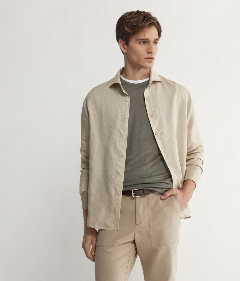 Falconeri Camicia in lino Uomo Marrone Mandorla Taglia 46