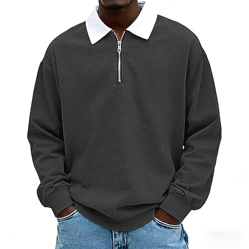 Per uomo Magliette Polo a Nido d'Ape Polo Vacanza Streetwear Zip a un quarto Manica Lunga Moda Essenziale Blocco di colori Patchwork Primavera Autunno Vestibilità regolare Nero Verde militare Viola