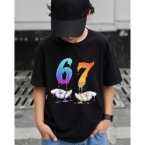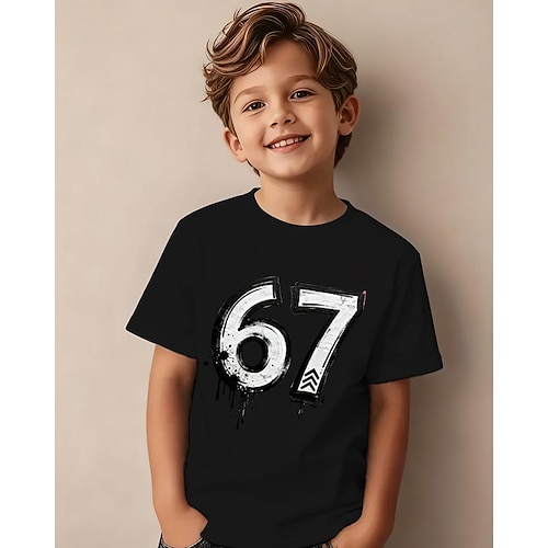 Cotone Bambini Ragazzi Nero Bianco Grafico Gergo divertente 67 Maglietta Blusa Girocollo Manica Corta All'aperto Abbigliamento Quotidiano Moda Streetwear Designer Stampa Estate