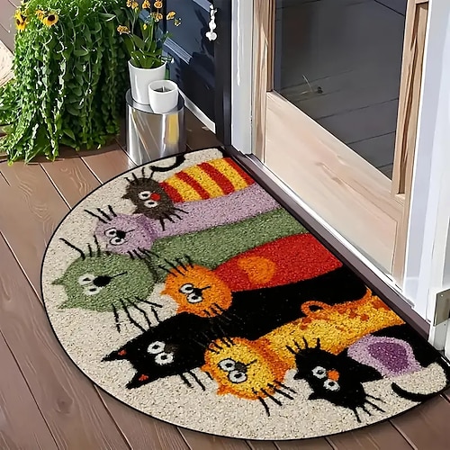 zerbino con simpatico motivo a gatto con cartoni animati, tappeto d'ingresso, resistente allo sporco, facile da pulire, tappetino per porta d'ingresso, corridoio, arredamento per interni.
