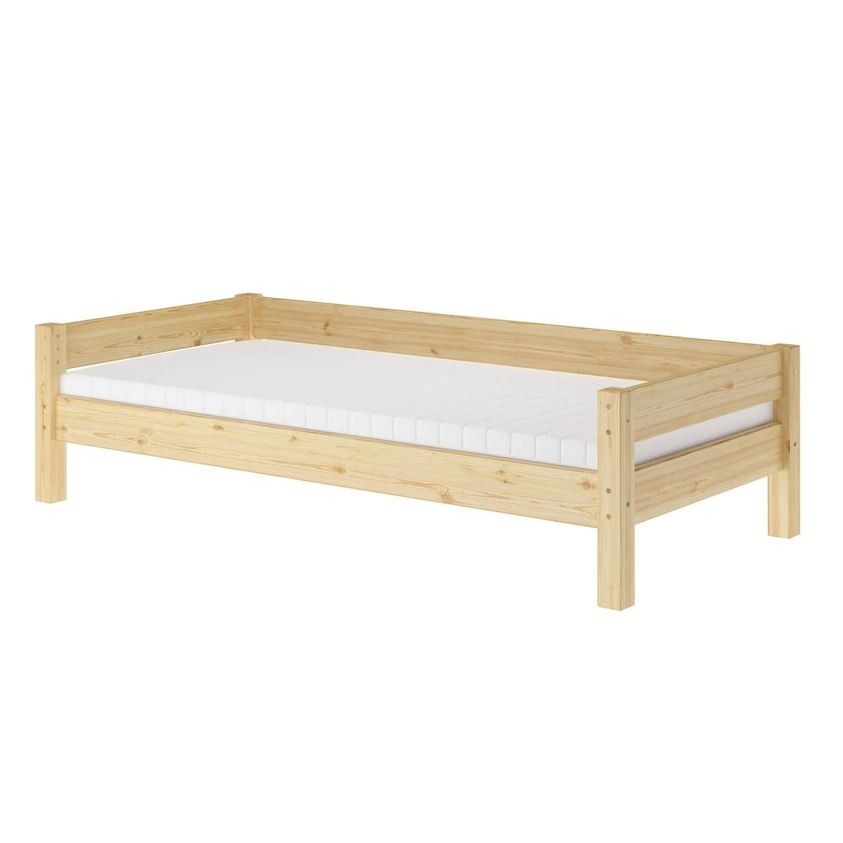 Erst-Holz Einzelbett, Holzbett Kiefer massiv klar lackiert 90x200 wählbares Zubehör V-60.20-09 Rollrost und Matratze inkl.