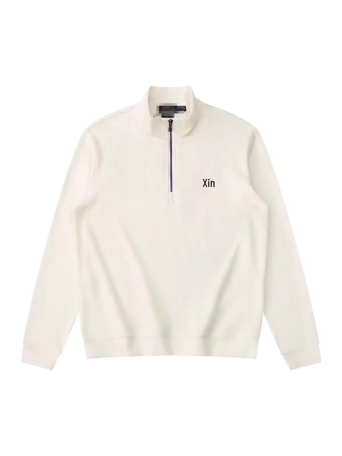 Sweat-shirt pour homme en pur coton à demi-zip avec broderie poney cm café/blanc