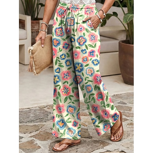 Per donna Gamba larga Chinos Pantaloni Vacanza Casual Lunghezza intera Vita Alta Floreale Grafico Elastico in vita Stampa Taglio alto Comodità Traspirabilità Morbido Inelastico Vacanza Streetwear