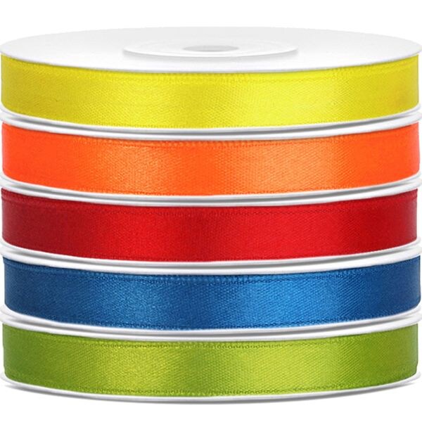 Satin Geschenkband 6mm 5 Farben je 25m lang bunt gelb orange rot blau grün Schleifenband Geschenkverpackung Geburtstag Hochzeit Weihnachten 5er Set