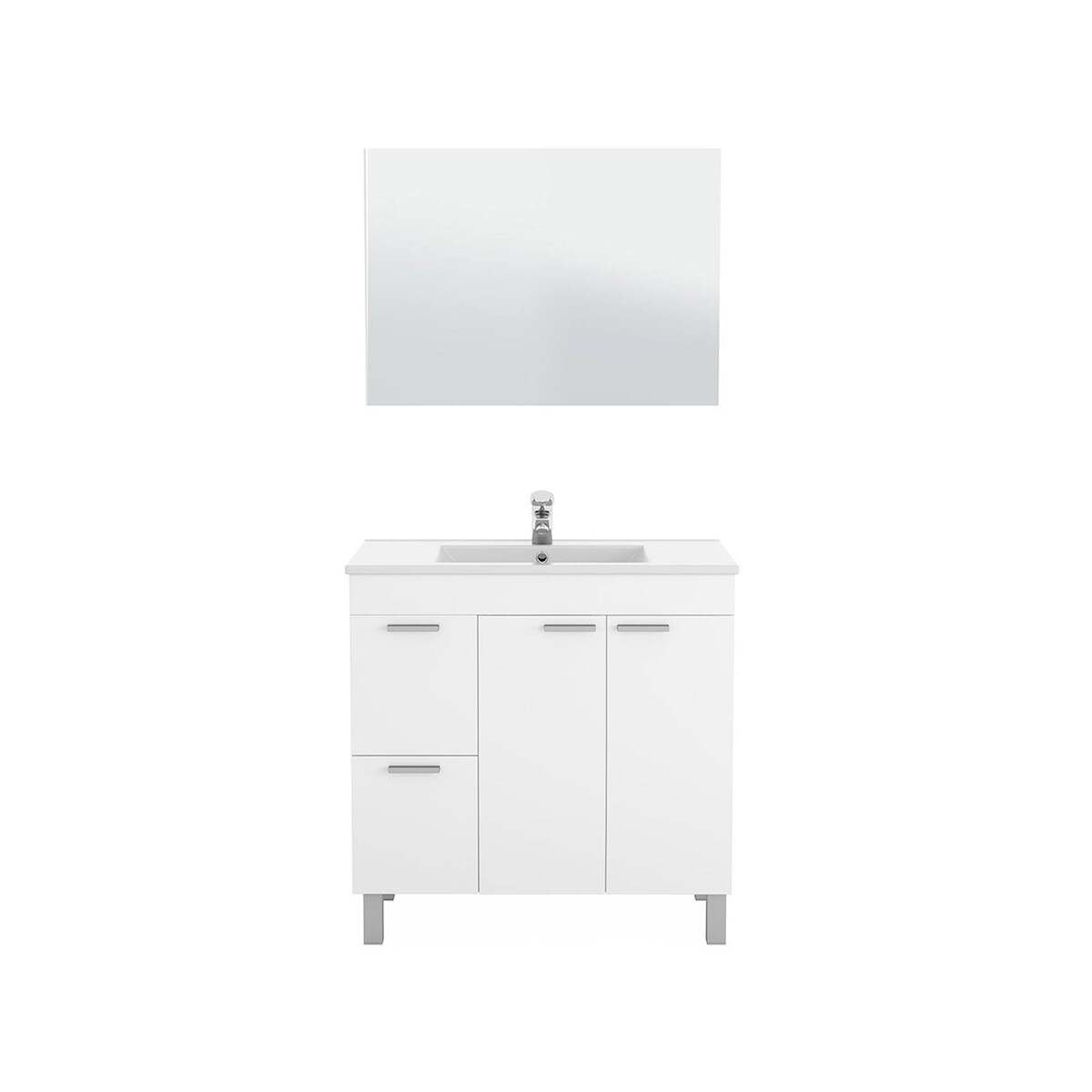 Dmora Unterschrank Lakewood, Badezimmerschrank, Kleiderschrank mit 2 Türen und zWeißchubladen mit Spiegel, 80x45h80 cm, Glänzend Weiß