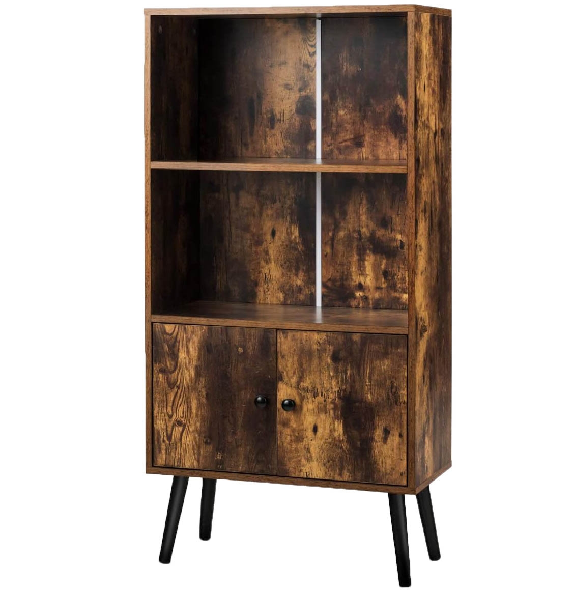 COSTWAY Bücherregal mit 2 Türen, Bücherregal, Holz Stehregal, Vintage, Holzregal, Braun