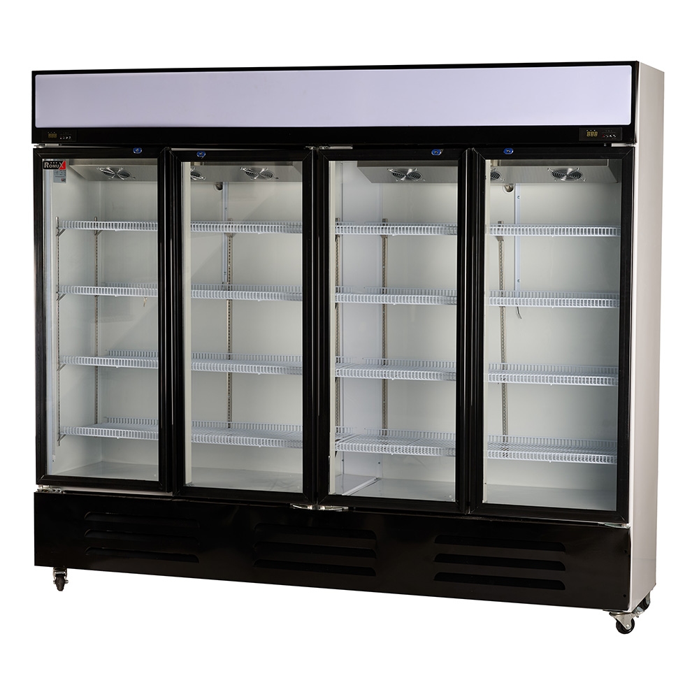 Romux® Glastürkühlschrank 1300 Liter 4 Tür Belüftet mit Umluftsystem | Professioneller Getränkekühlschrank mit Glastür & LED | Flaschenkühlschrank