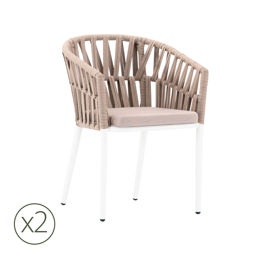 Set di 2 sedie in alluminio bianco e corda beige con cuscino