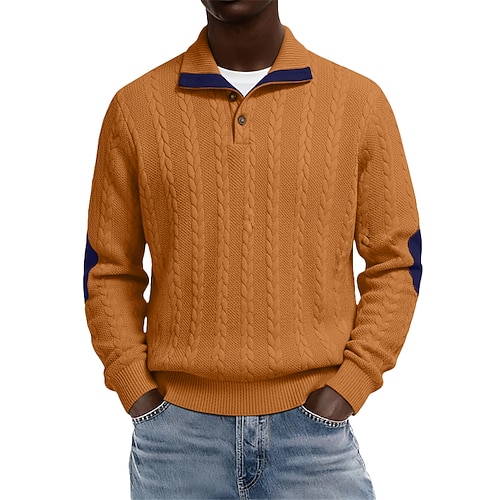 Per uomo Maglia Maglione Felpa con cappuccio abbottonata Maglia a coste Verde militare Borgogna Blu marino Cachi Colletto Polo Semplice Patchwork Blocco di colore Testurizzato Casuale Quotidiano