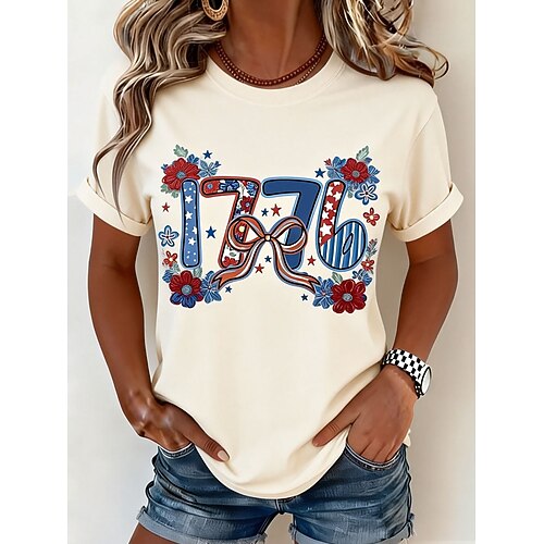 Giorno dell'Indipendenza Americana Per donna Maglietta Stampato Grafico Bandiera Lettera Elegante Classico Casual Manica Corta Girocollo Top Regolari Quotidiano Nero Rosso Grigio Estate Primavera