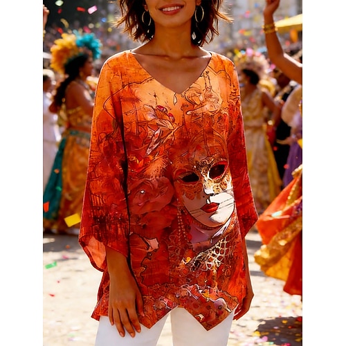 Carnevale Per donna Blusa Grafico Astratto Vintage Elegante Casual Manica 3/4 Scollo a V Top Regolari Quotidiano Ferie Stampato Blu Arancione Verde Cachi Primavera Autunno