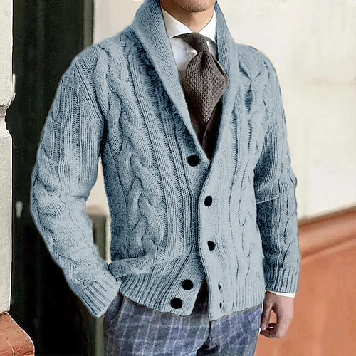 Per uomo Felpa Maglione elegante Cardigan A Coste Treccia Maglia Top Regolari Lavorato a maglia Semplice Collo a scialle Vacanza Moda Casuale Abbigliamento quotidiano Abbigliamento Primavera Autunno
