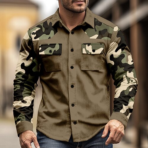 Per uomo Colore sfumato Camicia di Velluto a Coste Giacca-camicia Giacca camicia Manica Lunga Casual All'aperto Abbigliamento Quotidiano Autunno Inverno Collo ripiegato Bottonato Caldo Giacca con