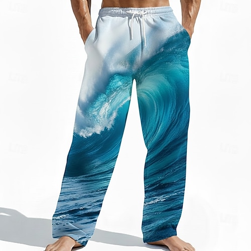 Per uomo Oceano Onde Pantaloni Pantaloni Larghi Pantaloni casual Misura del girovita medio Hawaiano All'aperto Vacanza Abbigliamento mare Coulisse elastica in vita Pantaloni tipo lino con tasche