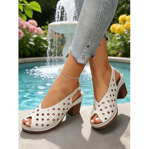 Per donna Casuale Quotidiano Viaggio Tacco grosso Peep Toe Casual Finta Pelle Fibbia Nero Rosso Beige