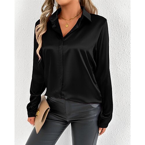 Per donna Camicia Elegant Elegante Raso/Satin Tinta unica Elegante Casual Manica Lunga Colletto a Camicia Top Regolari Quotidiano Uscire Bottoni Nero Bianco Beige Primavera Autunno