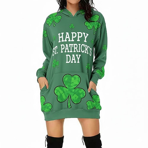 San Patrizio 2026 Trifoglio Irlandese fortunato Carnevale Felpa con cappuccio Innovativo Divertente Adulti Per donna Giorno di San Patrizio Casuale Feste Costume di Carnevale facile Vestirsi