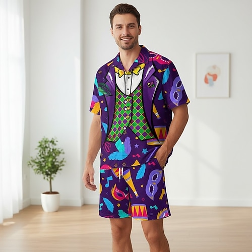 Martedì Grasso 2026 Carnevale Abiti Shorts Camicie hawaiane Casual Adulti Per uomo Carnevale martedì grasso Carnevale di Rio Spiaggia Feste Costume di Carnevale facile Vestirsi