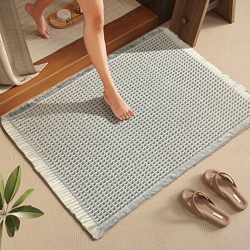 Tappetino da bagno in stile waffle, antiscivolo, lavabile, super assorbente e ad asciugatura rapida, piccoli tappetini da bagno, arredamento da bagno in stile fattoria, 18'' x 30'', cachi e bianco