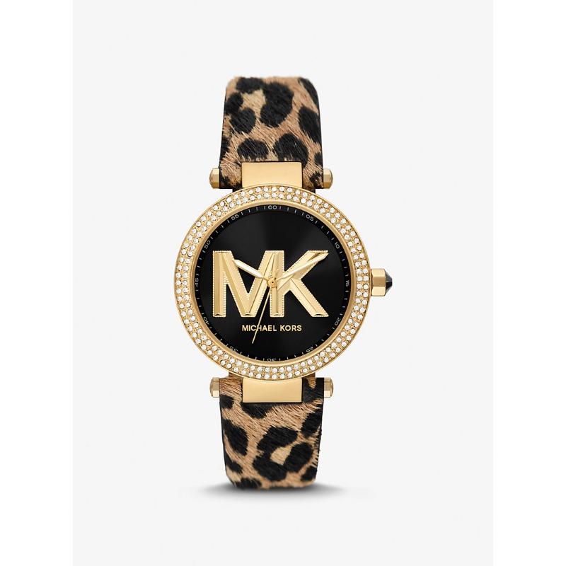 Michael Kors Parker Pavé Goudkleurig en Kalfsleer Horloge MK4723 goudbruine kleur