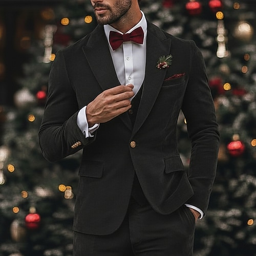 Uomo Matrimonio Completi Dentellato Nero Giallo Affari Formale Tinta unita Vestibilità standard 3 pezzi Monopetto a un bottone