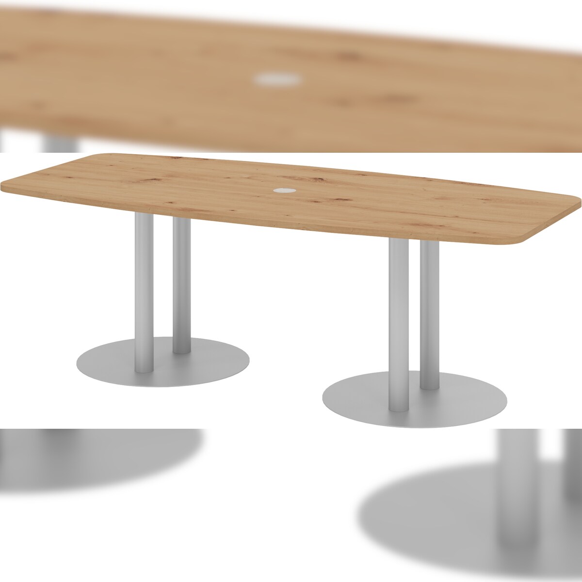 bümö Konferenztisch oval 220x103 cm großer Besprechungstisch in Asteiche, Besprechungstisch mit Säulen in Silber, Meetingtisch für 8 Personen,