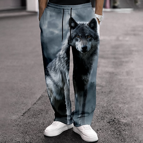 Per uomo Animale Lupo foresta Pantaloni da tuta Pantaloni Pantaloni casual Misura del girovita medio Vintage Retrò All'aperto Caccia Allenamento Coulisse elastica in vita Pantaloni a gamba dritta con