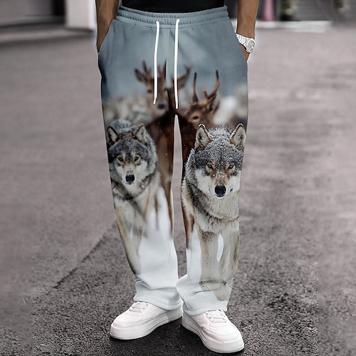 Per uomo Animale Lupo Renna Pantaloni da tuta Pantaloni Pantaloni casual Misura del girovita medio Vintage Retrò All'aperto Caccia Allenamento Coulisse elastica in vita Pantaloni a gamba dritta con