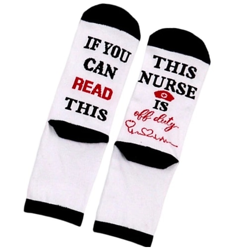 se riesci a leggere questi calzini da infermiera fuori servizio, divertenti calzini jacquard novità per infermiere, comodi calzini regalo per pausa dal lavoro, turno di notte, compleanno, Natale