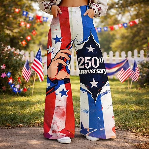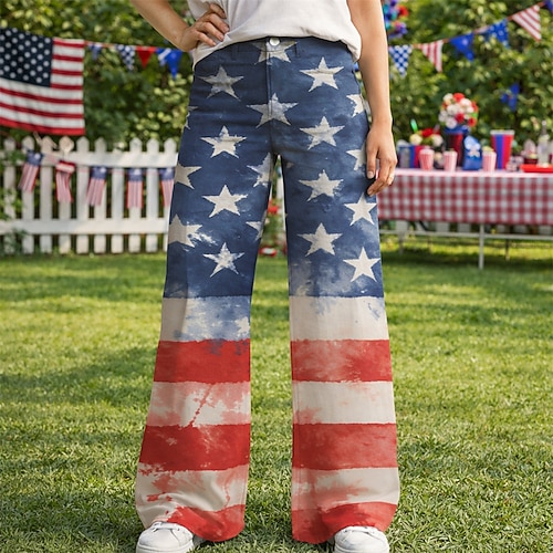 Americano 250 Retrò Vintage Anni '70 Pantaloni Pantaloni a gamba larga Hippie Disco Vita alta Costume Per donna Mascherata 4 Luglio Giorno dell'Indipendenza Semiquincentenario Adulti Pantaloni