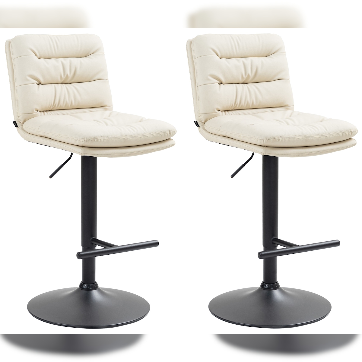DELUKE® Barhocker 2er Set TURIN - Creme, Kunstleder, Schwarz | Barhocker mit Lehne Barstuhl Tresenhocker Tresenstuhl Kneipenhocker Kneipenstuhl