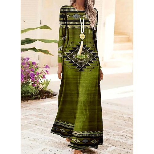 Per donna Abito maxi Abito a Tubino Abito a trapezio Festa Casual Boho Quotidiano Data Uscire Vestibilità regolare Tinta a nodi Tribale Manica Lunga Girocollo Rosso Blu Viola Verde Primavera Autunno