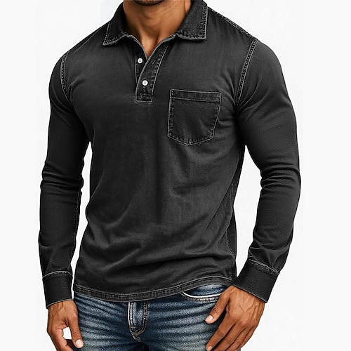 Per uomo Polo Maglia da golf Affari Casuale Classico Manica Corta Moda Essenziale Tinta unica Blocco di colori Tasca Bottoni Estate Primavera Autunno Tutte le stagioni Vestibilità regolare Nero Blu