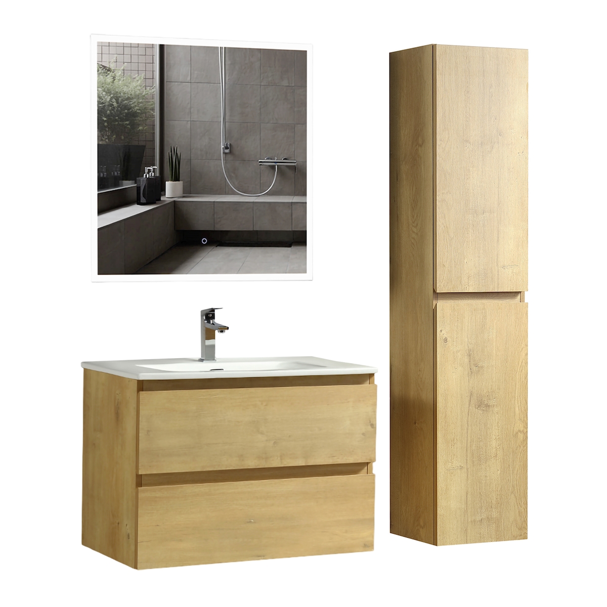 Alpenberger Badezimmermöbel Set mit Badspiegel | Waschbecken mit Unterschrank und Hochschrank | Waschtisch mit Waschbeckenunterschrank Badmöbel Set