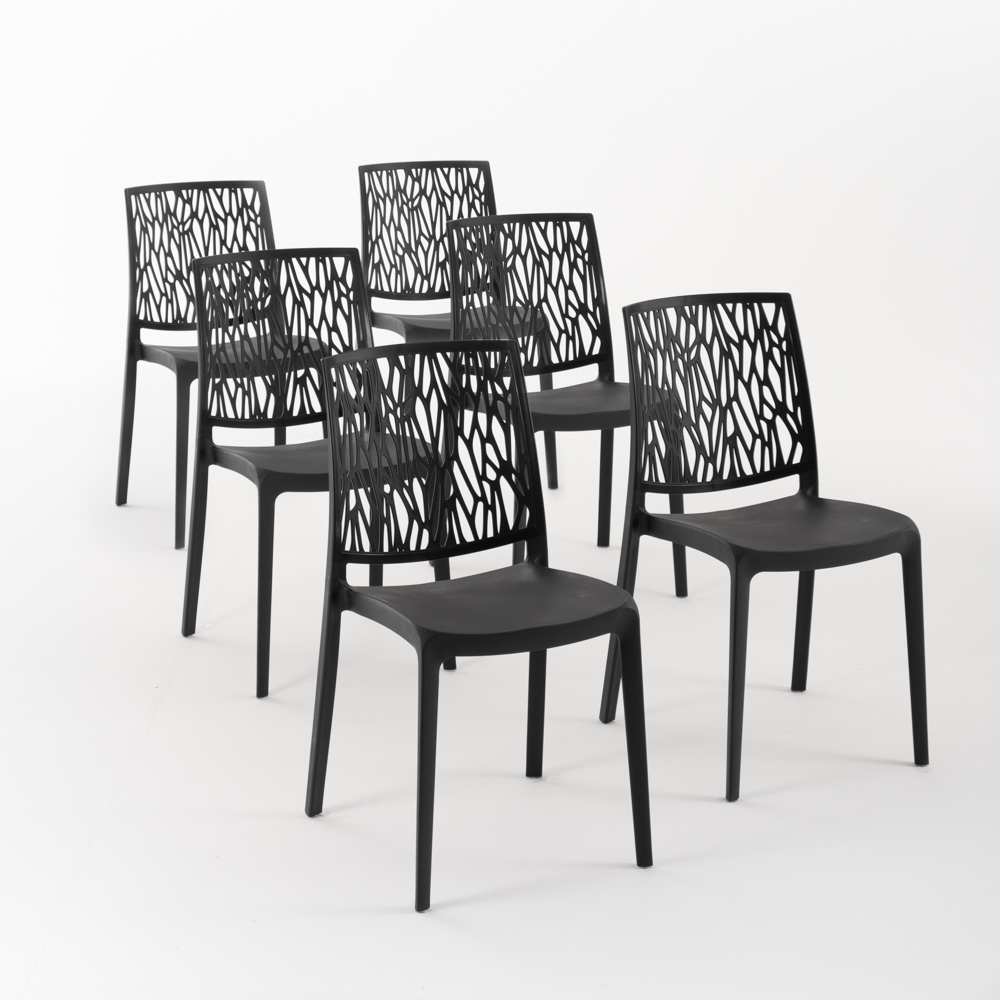 RATTATAN 6er-Set stapelbare Stühle aus Polypropylen mit Glasfasern für Außenbereich und Garten, Bar und Restaurant, Küche modernes Design - LISA - Schwarz