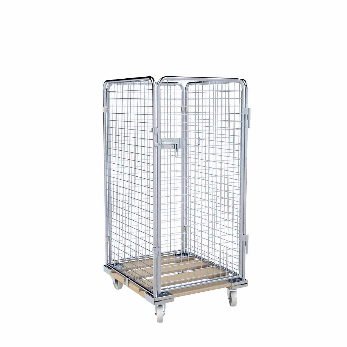 Oswald Transportgeräte Rollbehälter mittel, 4-seitig, Diebstahlschutz, Nutzhöhe 1.350 mm, Rollplatte aus Holz, 724 x 815 x 1.540 mm, 500 kg