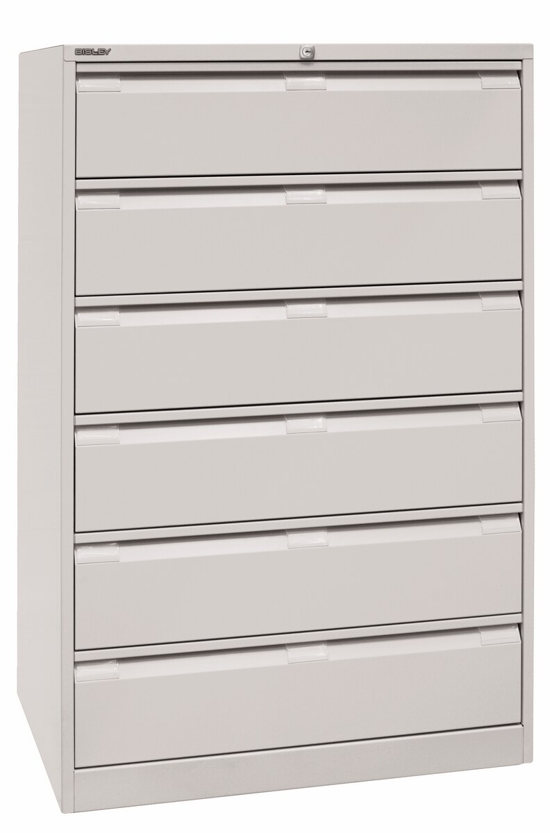 Karteischrank, dreibahnig, DIN A5, 6 Schubladen, lichtgrau BISLEY