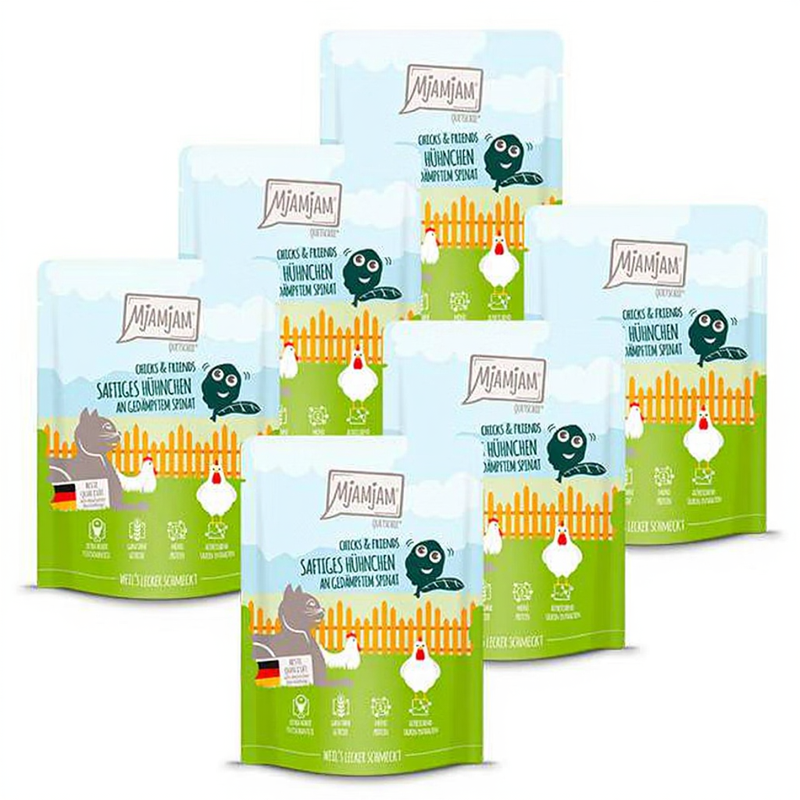 MjAMjAM - Quetschie - Chicks & Friends Sappige kip met gestoomde spinazie 300g*6