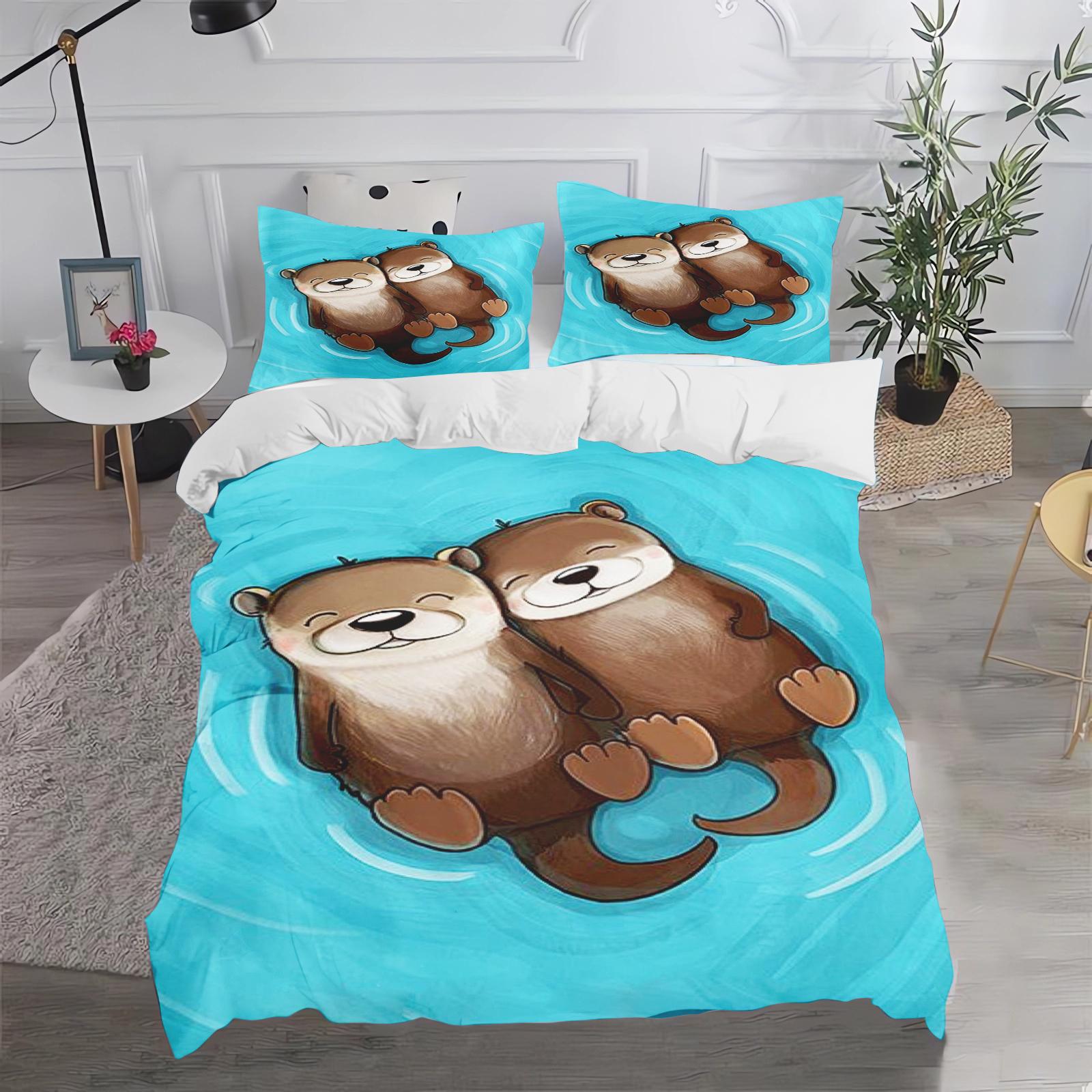 Niedliche Sanrio Friends Print Bettwäschesets Hello Kitty Melody Cinnamoroll Bettdecke Bettbezug Kissenbezug 2-3-teilige Sets