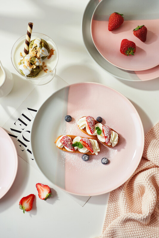 JIWOO Nicole 10-Zoll-Essensttell Pink+Grau, 4er / Set, Wertpaket,Spülmaschinen- und mikrowellengeeignet