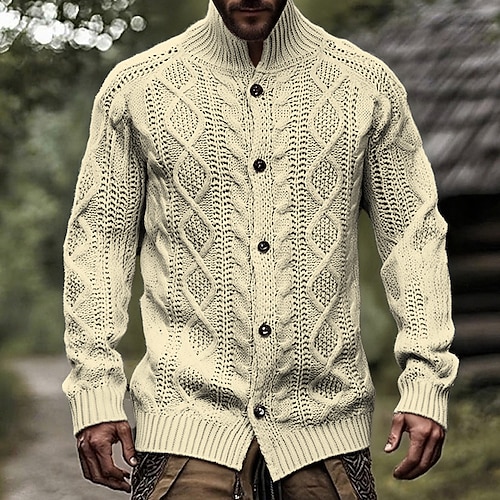 Per uomo Cardigan Cardigan Spesso Giacca cardigan A Coste Uncinetto Maglia Top Regolari Base Colore Solido / Tinta Unita Colletto Mao Moda Classico Vacanza Abbigliamento quotidiano Abbigliamento