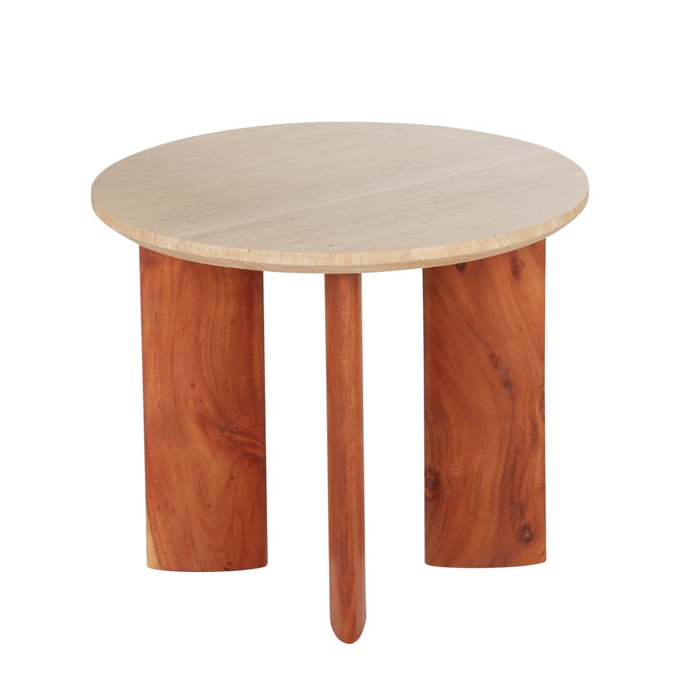 Bout de canapé en bois d'acacia et plateau en travertin