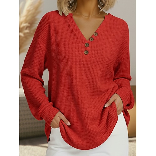 Per donna Camicia Camicia a nido d'ape Blusa Bottoni Semplice Elegante Classico Moderno Manica Lunga Scollo a V Top Regolari Quotidiano Ferie Uscire Nero Bianco Rosso Blu marino Primavera Autunno