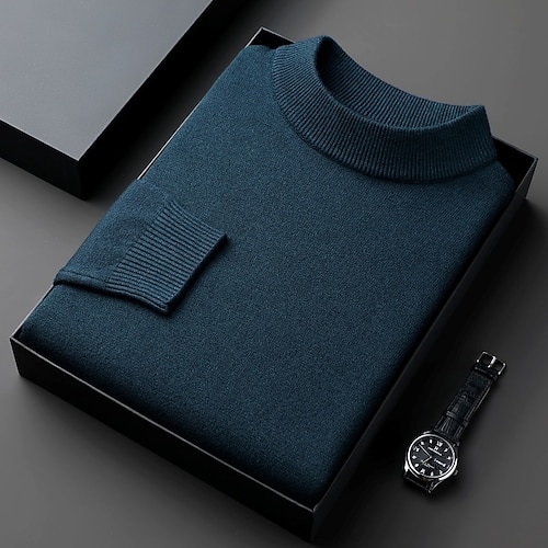 Per uomo Pullover Maglione Maglione lavorato a maglia A coste Maglia Standard Lavorato a maglia Liscio A collo alto Di tendenza Essenziale Da mare Da tutti i giorni Abbigliamento Autunno inverno Nero